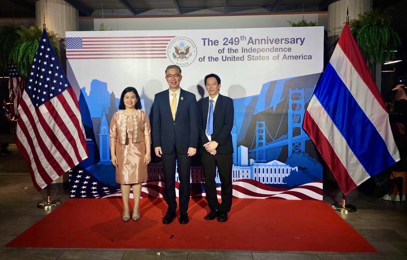 วันที่ 25 มิถุนายน 2568 ดร. ณัฐพล รังสิตพล ปลัดกระทรวงอุตสาหกรรม พร้อมด้วย นางสาวณิรดา วิสุทธิชาติธาดา รองผู้อำนวยการสำนักงานเศรษฐกิจอุตสาหกรรม กองเศรษฐกิจอุตสาหกรรมระหว่างประเทศ กระทรวงอุตสาหกรรม เข้าร่วมงานวันชาติสหรัฐอเมริกา เพื่อร่วมเฉลิมฉลองและแสดงความยินดี ในโอกาสครบรอบ 249 ปี แห่งการประกาศอิสรภาพของสหรัฐอเมริกา จัดโดยสถานเอกอัครราชทูตสหรัฐอเมริกาประจำประเทศไทย โดยมีอัครราชทูตที่ปรึกษา Gwendolyn Cardno ให้การต้อนรับ